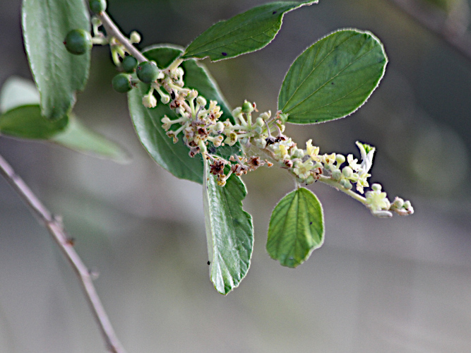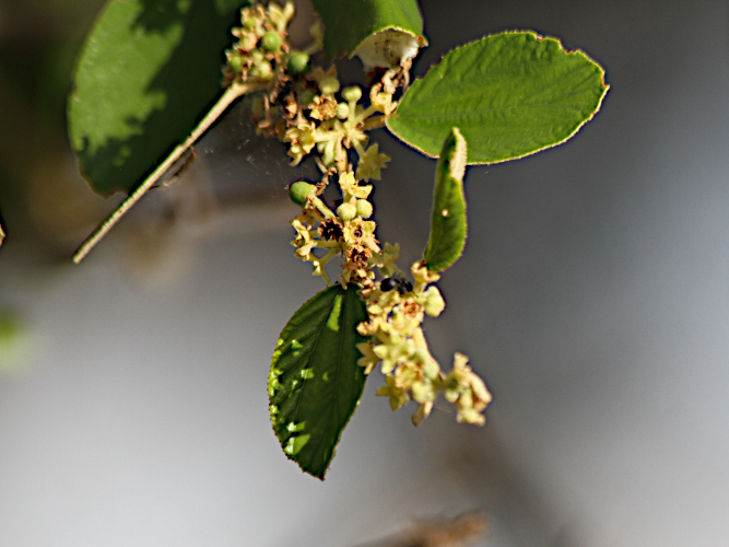 Ses petites fleurs jaunes ou vertes sont arrangées en cymes axillaires. Elles sont hermaphrodites et protandres. Leurs anthères apparaissent et produisent leur pollen avant que les stigmates ne deviennent récepteurs. Cette stratégie permet de réduire l'autopollinisation. Celle-ci est entièrement assurée par des insectes du genre abeilles, guêpes ou des diptères.