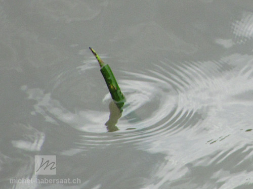 La dispersion : Lorsqu'il se sépare de l'arbre mère pour finalement tomber dans la mer, ce propagule bâti tout en longueur agit comme une barque. Il va pouvoir flotter ainsi pendant plusieurs semaines. Puis, l'une des extrémités du fruit va progressivement s'imbiber d'eau comme une éponge, s'alourdir et graduellement couler tandis que l'autre partie flotte toujours à la surface. Le fruit flotte alors à la verticale et sa longueur va lui permettre de diminuer la distance entre le sol et la surface. Lorsqu'il touche le sol, par le jeu des marées ou en s'approchant de la côte, le fruit pourra gentiment s'enfoncer dans la vase. Alors, des racines vont germer de la partie immergée pour ancrer la plantule dans ce sol et une tige et des feuilles vont pousser de la partie aérienne. La plante pousse alors de préférence dans un milieu argileux et possède une croissance rapide. En une année, elle peut déjà avoir crû de plus d'une soixantaine de centimètres. Les propagules de l'hybride R. x lamarckii croissent mal. En revanche, la plante se reproduit facilement par bouturage ou reproduction végétative.