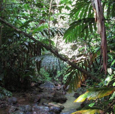 Cette image d’une forêt tropicale en mosaïque est accentuée par la nature du relief, rarement plat, souvent marqué par des vallons et des collines. Lors des pluies torrentielles, l’eau s’écoule vers les zones les plus basses, répartissant l’humidité de manière inégale dans l’ensemble du massif forestier. Cette variation engendre de nombreux microclimats, avec des sols différant par leur texture, structure et composition.