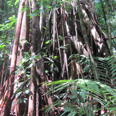 Les Moraceae, largement représentées par les Ficus spp. comme le figuier étrangleur, tolèrent des sols pauvres et irréguliers.